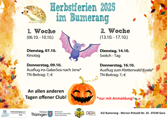 Das Herbstferienprogramm im Kinder- und Jugendzentrum Bumerang.