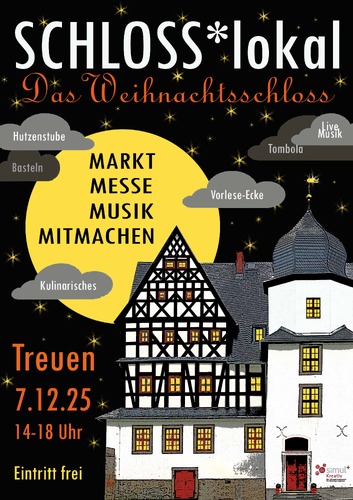 Im denkmalgeschützten Ambiente des 400 Jahre alten Treuener Fachwerkschlosses lädt der Förderverein ein zum zusammenkommen, zum hutzen, genießen, mitmachen. Lokale Händler, Handwerker, Künstler bieten den Besuchern schöne Dinge zum schauen und kaufen. Es gibt Gelegenheit zum Geschichten hören, zum Schätze suchen, zum über-die-Schulter-schauen, zum Geschenke basteln, Preise zu gewinnen und zu vielem mehr. Umrahmt wird der gemütliche Nachmittag von Livemusik und einem Angebot an Speisen und Getränke.