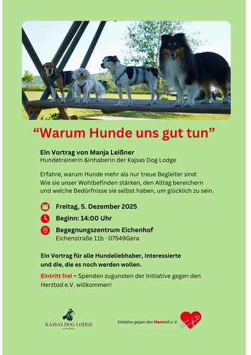 | Beschreibung | Ein Vortrag für alle Hundeliebhaber, Interessierte und die, die es noch werden wollen. |