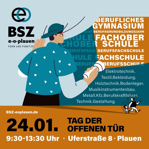 Das BSZ e.o.plauen präsentiert zum Tag der offenen Tür am Samstag, 24.01.2026, von 9:30 bis 13:30 Uhr, allen Interessierten seine vielfältigen Möglichkeiten der beruflichen Bildung. Neben einer persönlichen Beratung in den einzelnen Schularten, kann man sich in den verschiedenen Fachkabinetten, Laboren, Ateliers und Werkstätten umschauen und Vieles selbst ausprobieren.