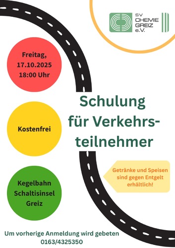 Verkehrsteilnehmerschulung in den Räumen der Kegelbahn auf dem Sportplatz der Schaltisinsel Greiz-Sachswitz