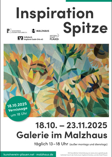 Im 35. Jahr seiner Wiedergründung nach der friedlichen Revolution lädt der Kunstverein Plauen-Vogtland e.V. mit der Spitzenausstellung als Werkschau der künstlerisch aktiven Mitglieder in die Galerie im Malzhaus Plauen ein.