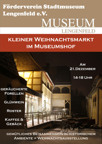 In der besonderen Atmosphäre unseres historischen Gebäudes laden wir herzlich zu einem kleinen Weihnachtsmarkt ein. Zusammen mit unserer Weihnachtsausstellung entsteht in und um das Museum ein besinnlicher Ort, an dem sich Geschichte und winterliche Gemütlichkeit begegnen.